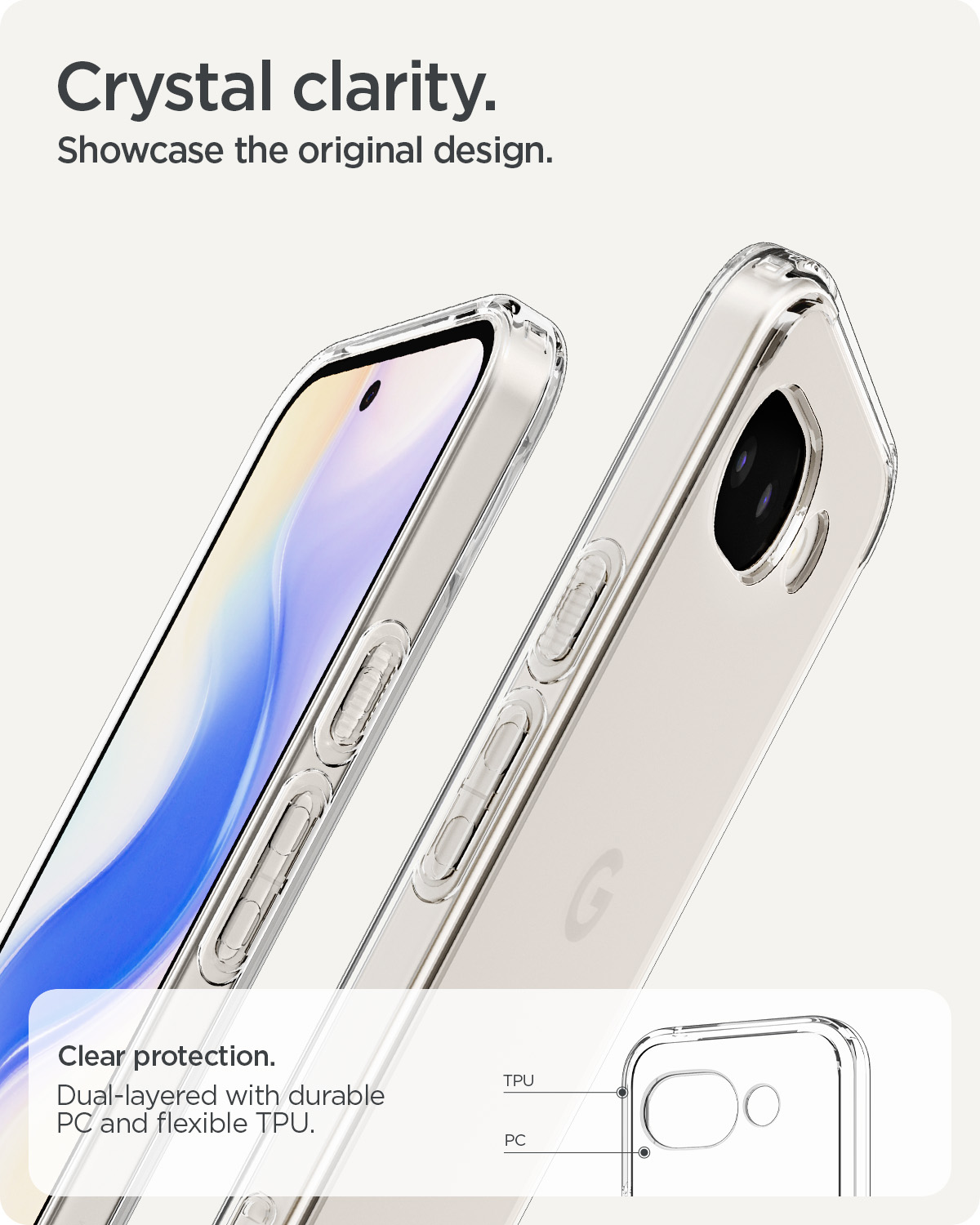 Zesílená ochrana rohů s technologií Air Cushion aktivně pohlcuje energii nárazu a vyvýšené lemy kolem fotoaparátu brání jeho poškození. Zachovává plnou kompatibilitu s bezdrátovým nabíjením a poskytuje precizní odezvu všech ovládacích prvků.