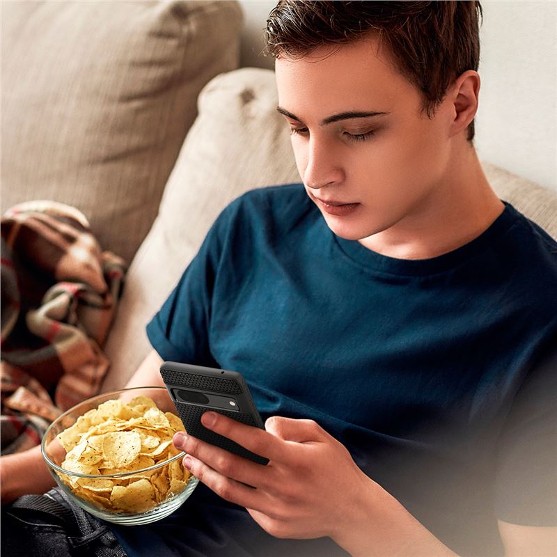 Zabraňuje poškození rohů a hran při nárazech pomocí patentované technologie Air Cushion. Přesně tvarované okraje mírně přesahují nad úroveň obrazovky a čočky fotoaparátu, čímž vytvářejí bezpečnou vrstvu ochrany při odkládání telefonu na stůl.