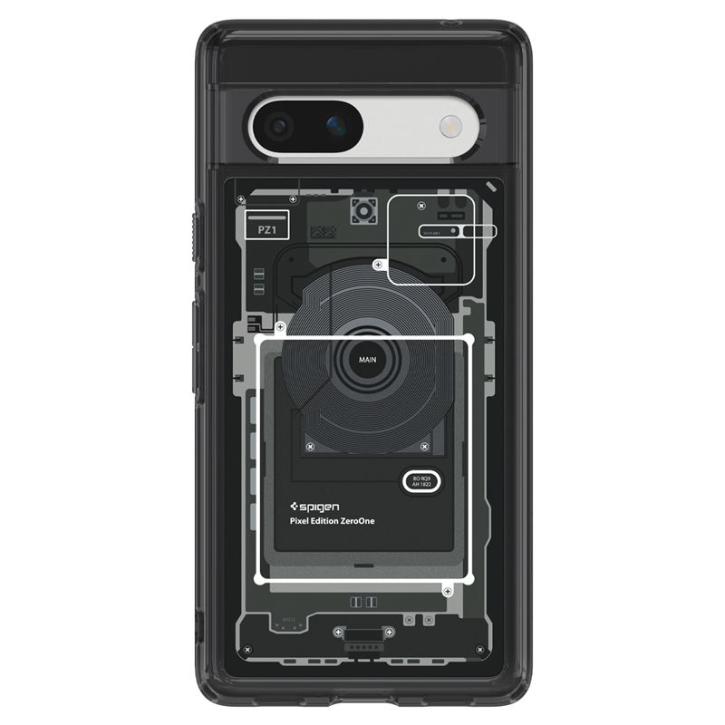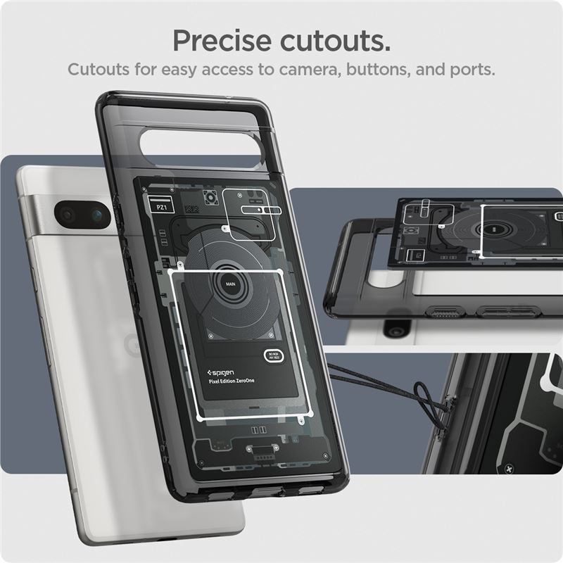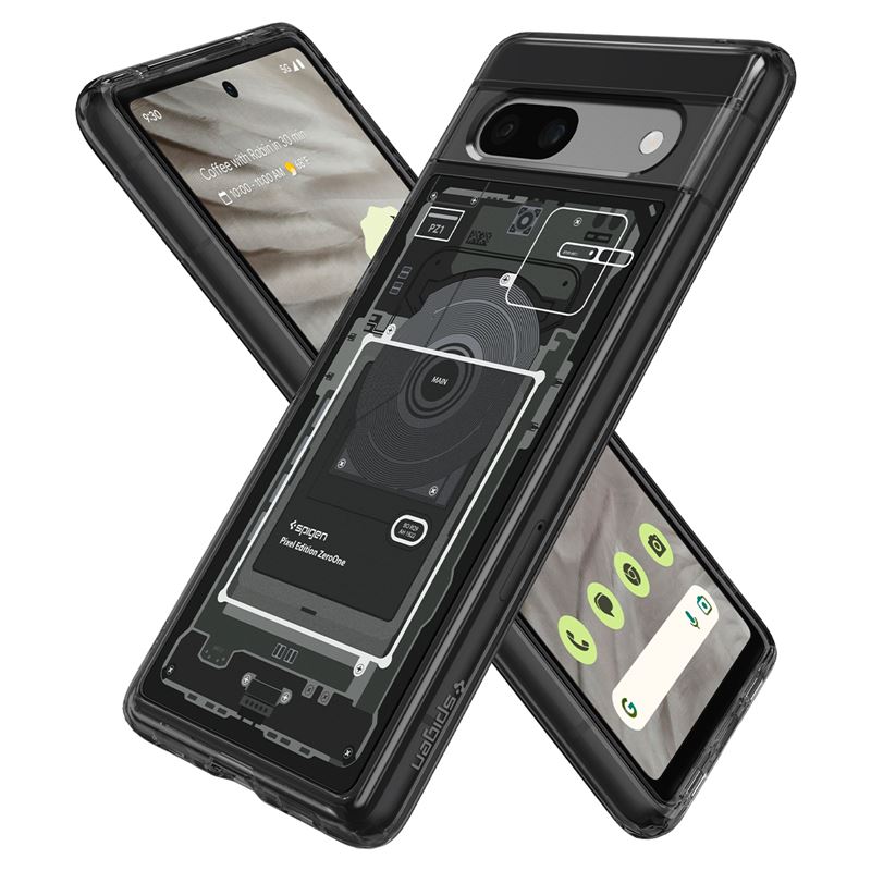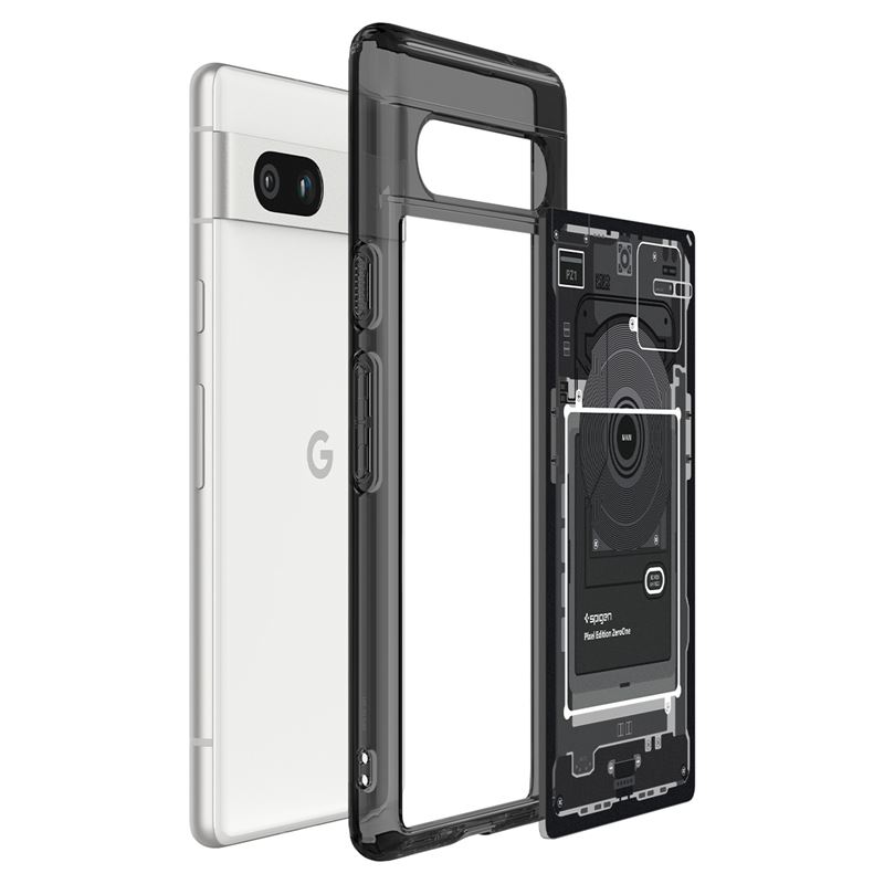 Odolný šedý kryt Spigen Ultra Hybrid zajišťuje špičkovou ochranu pro chytrý telefon Google Pixel 7a. Konstrukce spojuje tuhou zadní část s flexibilním obvodovým rámem, zatímco mírně vyvýšené okraje účinně brání poškození displeje a optiky fotoaparátu při položení na rovný povrch.