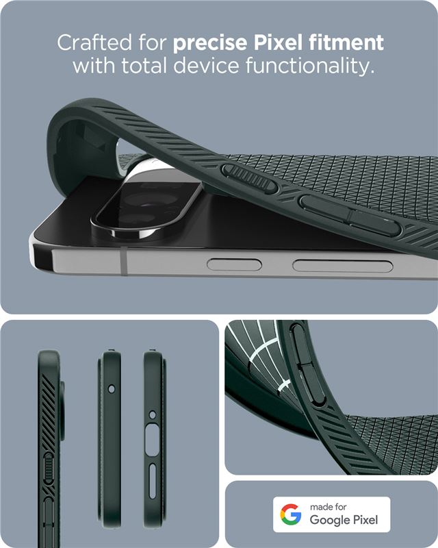 Odolné zelené pouzdro Spigen Liquid Air pro Google Pixel 9 Pro XL představuje spolehlivou ochranu pro prémiový smartphone. Texturovaný matný povrch zajišťuje bezpečné držení a dodává moderní vzhled. TPU konstrukce přesně lícuje s tělem a zbytečně nezvětšuje jeho objem.