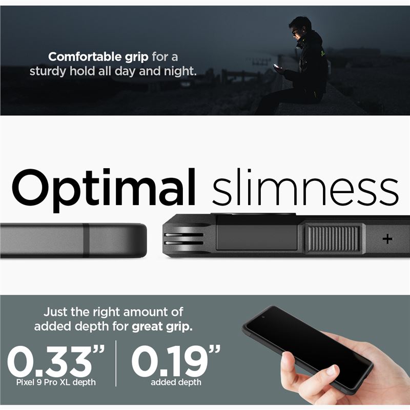 Odolný kryt Spigen Tough Armor pro Google Pixel 9 Pro XL sází na osvědčenou dvouvrstvou strukturu z pružného TPU a pevného polykarbonátu. Tento robustní štít spolehlivě pohlcuje vibrace a chrání rohy i záda telefonu před nevzhlednými oděrkami a prasklinami.