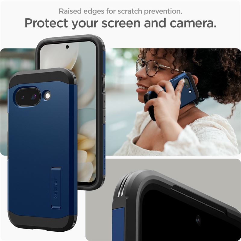 Zahrnuje technologii Air Cushion v rozích pro pohlcení energie z pádů a disponuje praktickým výklopným stojánkem pro stabilní polohu při sledování obsahu. Zvýšené lemy kolem displeje a fotoaparátu brání jejich poškrábání a přesné výřezy zajišťují plynulé ovládání všech tlačítek.