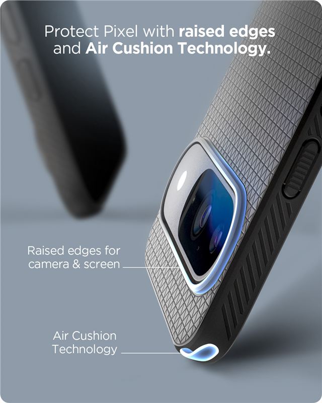 Využívá pokročilý systém vzduchových kapes Air Cushion pro pohlcování energie při nechtěných pádech. Zvýšený lem nad úrovní obrazovky zabraňuje přímému kontaktu skla s podložkou a pružné složení materiálu usnadňuje nasazení i sejmutí bez rizika poškození hran mobilu.