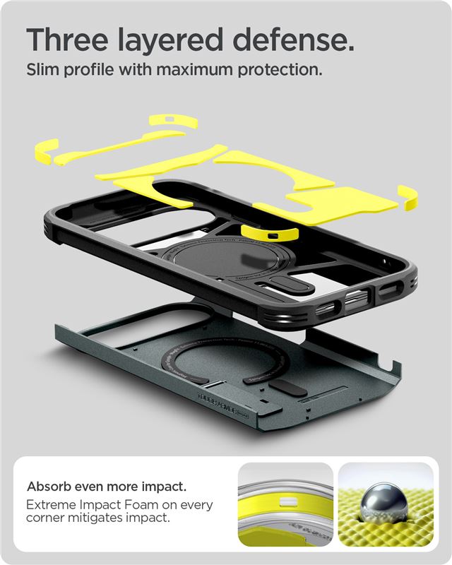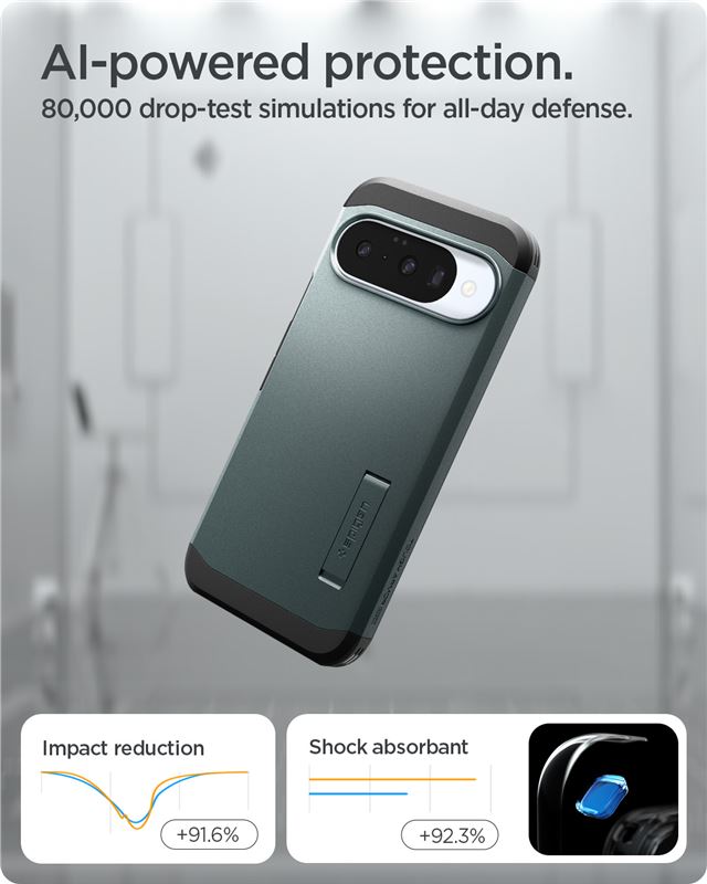 Extrémně odolný zelený kryt Spigen Tough Armor MagSafe pro Google Pixel 10 a Pixel 10 Pro využívá dvouvrstvou konstrukci pro maximální pohlcení nárazů. Splňuje vojenskou certifikaci odolnosti, přičemž technologie Air Cushion v kombinaci s pevným tělem chrání telefon i v nejnáročnějších podmínkách.