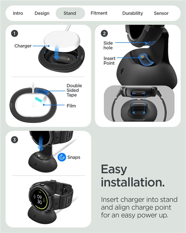 Ochranný kryt pro Google Pixel Watch 4 45mm Spigen Rugged Armor Pro + Stand - černá