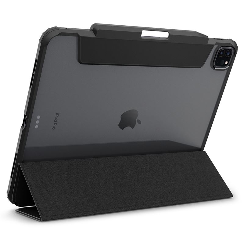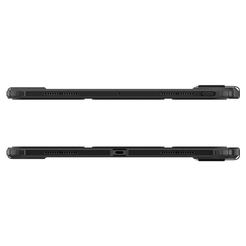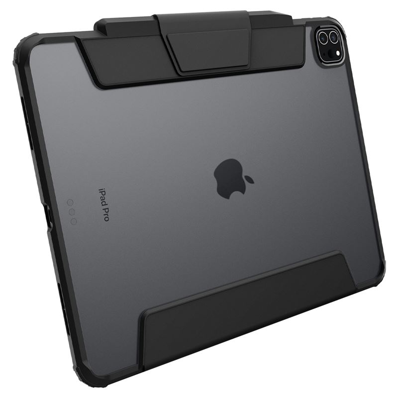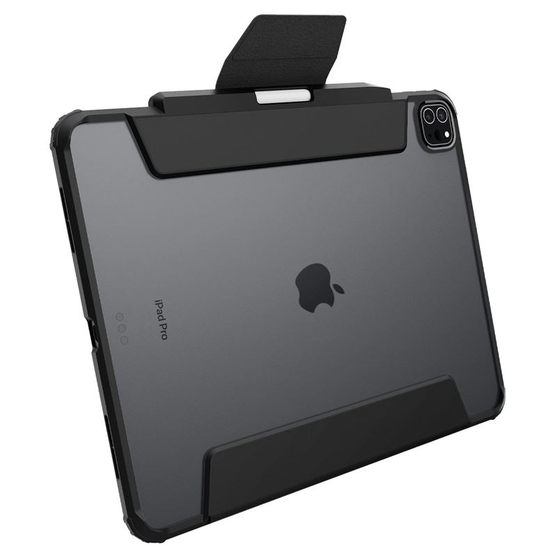 Elegantní ochranný kryt v černém provedení zachovává štíhlý profil iPadu Pro 13" 2024 a současně zajišťuje jeho maximální bezpečí. Hybridní konstrukce spojuje pružný TPU rám s odolnou polykarbonátovou zadní stranou, čímž vytváří pevnou bariéru proti poškrábání i nárazům. Integrovaný kryt displeje lze snadno složit do praktického stojánku pro pohodlné psaní nebo sledování videí, přičemž nechybí plná podpora pro nabíjení a uložení Apple Pencil.