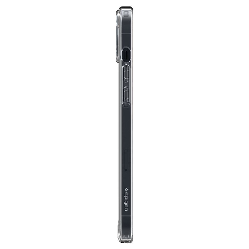 Průhledný kryt Spigen Ultra Hybrid pro iPhone 14 spojuje odolnou polykarbonátovou stěnu s flexibilním termoplastickým rámečkem. Hybridní konstrukce nechává vyniknout čistý design telefonu a zajišťuje jeho bezpečí bez zbytečného nárůstu objemu.