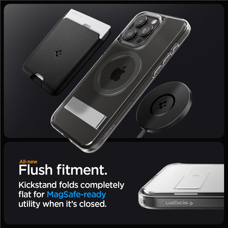 Ochranný kryt v šedém provedení přesně kopíruje rozměry telefonu a zajišťuje perfektní usazení bez zbytečného nárůstu objemu. Hybridní struktura z tuhého polykarbonátu a poddajného TPU rámu efektivně rozkládá energii nárazu, zatímco silný magnetický kroužek podporuje veškeré MagSafe příslušenství.