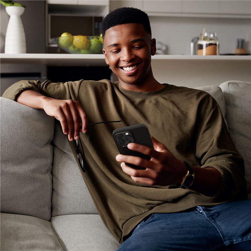 Tlumí vibrace a nárazy v rozích využitím technologie Air Cushion při kontaktu s tvrdou zemí. Zvýšené okraje kolem displeje a zadního modulu fotoaparátu zabraňují přímému kontaktu s podložkou, čímž chrání nejnáchylnější části zařízení. Kryt je plně kompatibilní s bezdrátovým nabíjením bez nutnosti jeho snímání.