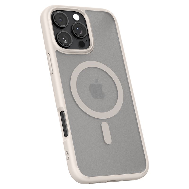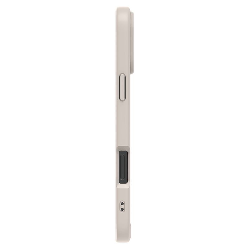 Kryt Spigen Ultra Hybrid MagSafe pro iPhone 16 Pro Max kombinuje elegantní design v titanové barvě s nekompromisní mechanickou odolností. Pevná zadní stěna a ohebný rám tvoří kompaktní celek, který pevně obepíná tělo telefonu a podporuje magnetické MagSafe příslušenství.