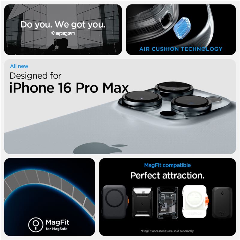 Zajišťuje bezpečí v rozích pomocí Air Cushion technologie a odolává pádům dle vojenských standardů. Hybridní spojení TPU a polykarbonátu udržuje iPhone 16 Pro Max v bezpečí před mechanickým poškozením, zatímco přesně tvarované krytky tlačítek zachovávají skvělou odezvu.
