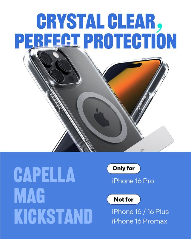 Průhledný ochranný kryt Caseology Capella pro iPhone 16 Pro spojuje vysokou úroveň bezpečí s plnou podporou MagSafe ekosystému a integrovaným stojánkem. Hybridní konstrukce z čirého TPU s úpravou proti žloutnutí a pevného polykarbonátu udržuje čistý design telefonu a chrání jej před poškozením.