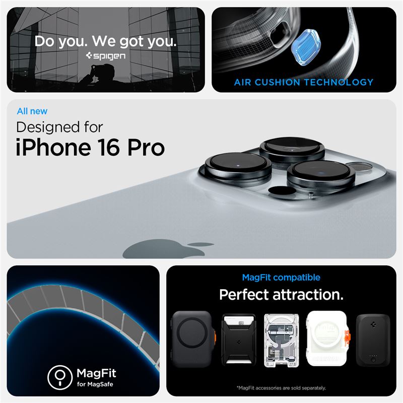 Hybridní konstrukce složená z pevné zadní části a pružného rámečku poskytuje telefonu iPhone 16 Pro nekompromisní ochranu v elegantním titanovém provedení. Integrovaný magnetický kruh zajišťuje bezchybnou spolupráci s technologií MagSafe a umožňuje bleskové bezdrátové nabíjení i pevné přichycení magnetického příslušenství.