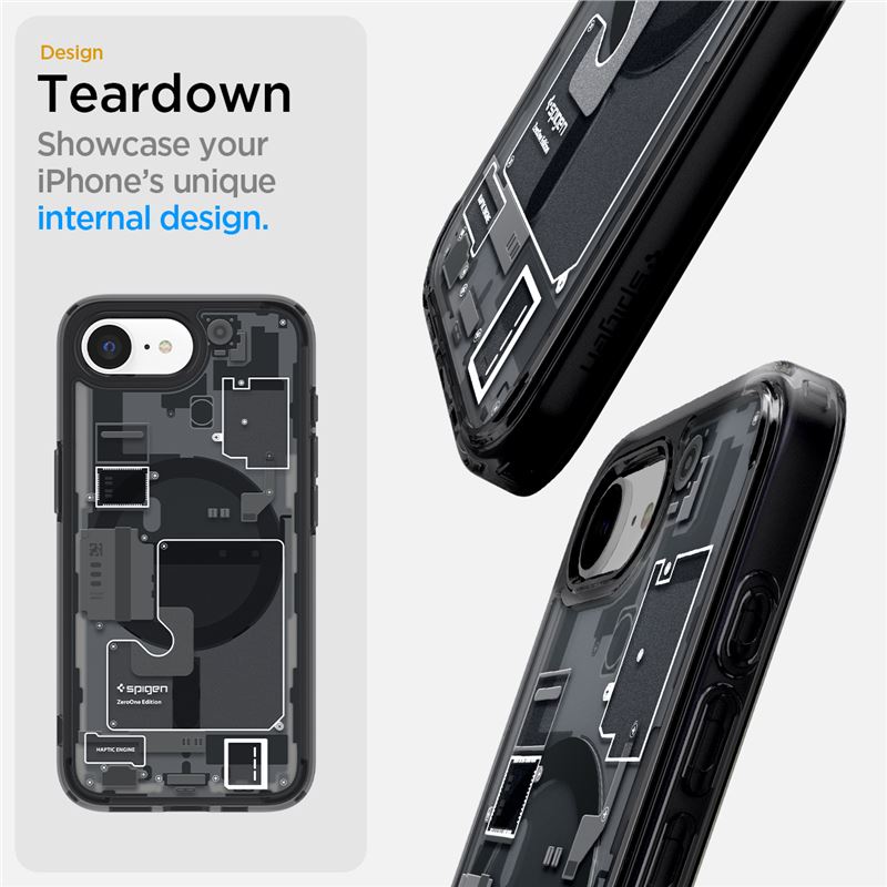 Obsahuje zabudovaný magnetický kruh pro bezproblémové využití MagSafe příslušenství a bezdrátových nabíječek. Technologie Air Cushion v rozích zmírňuje následky pádů v souladu s vojenskými standardy odolnosti Mil-grade, čímž zajišťuje bezpečnost telefonu při každodenním používání.