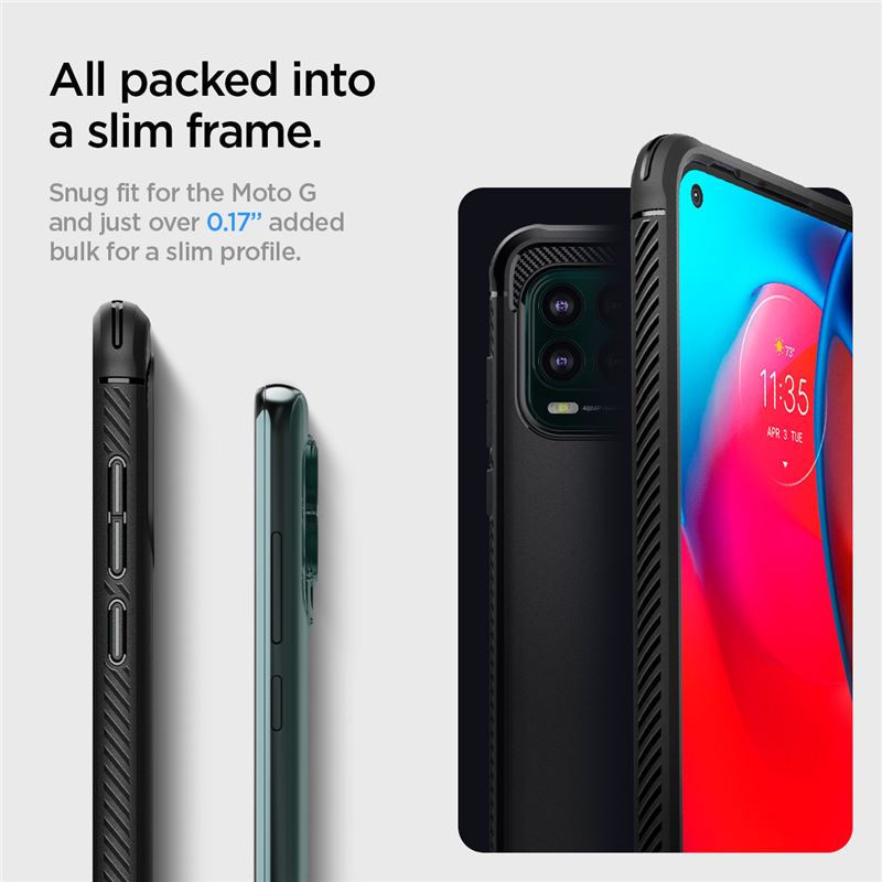 Matně černý ochranný kryt pro Motorola Moto G Stylus 5G vytváří spolehlivou bariéru proti poškrábání, nárazům a běžným nečistotám. Design s karbonovými prvky působí profesionálním dojmem, zatímco ohebný TPU materiál usnadňuje manipulaci a zajišťuje dlouhou tvarovou stálost pouzdra.