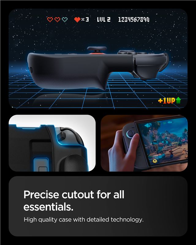 Umožňuje plný přístup k originálnímu stojanu i dokovací stanici bez nutnosti sundávání krytu při nabíjení nebo hraní na TV. Přesné výřezy pro joysticky, reproduktory a herní karty zaručují, že veškeré ovládací prvky zůstávají plně funkční a snadno dosažitelné.