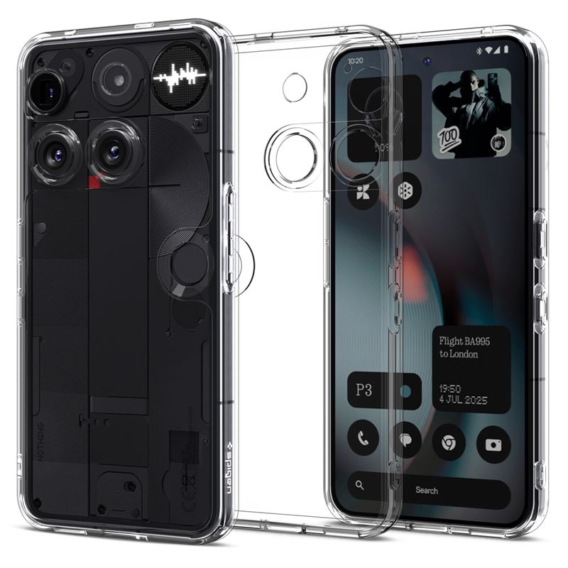 Minimalistický kryt Spigen Ultra Hybrid pro Nothing Phone (3) zachovává původní vzhled telefonu a zároveň mu poskytuje robustní ochranu. Kombinace polykarbonátových zad a TPU rámečku vytváří odolný celek, který bezpečně obepíná tělo přístroje bez zbytečného zvětšování jeho rozměrů.