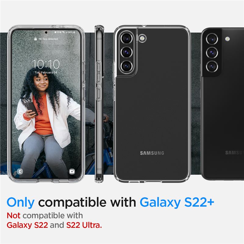Průhledný ochranný kryt Spigen Ultra Hybrid pro Samsung Galaxy S22+ spojuje pevnou polykarbonátovou zadní část s pružným TPU rámečkem. Tato hybridní konstrukce zachovává originální vzhled telefonu a současně zajišťuje nekompromisní ochranu při každodenním používání.