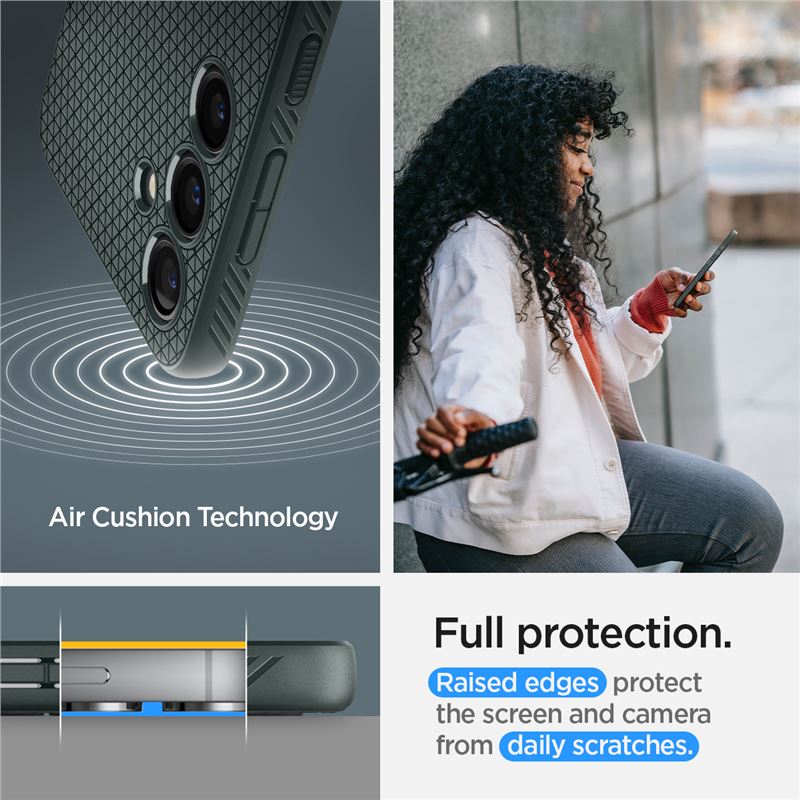 Splňuje vojenskou certifikaci odolnosti Mil-grade a využívá systém Air Cushion pro maximální bezpečí při pádech. Mírně zvýšené okraje chrání displej i fotoaparát, přičemž tenký TPU materiál dovoluje bezproblémové bezdrátové nabíjení.