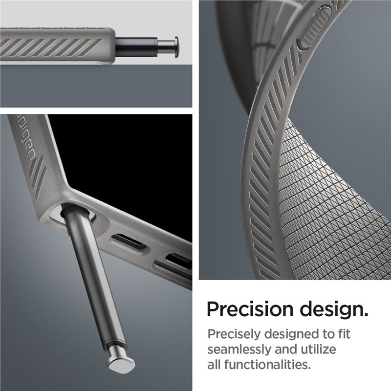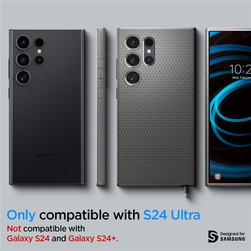 Šedé ochranné pouzdro Spigen Liquid Air pro Samsung Galaxy S24 Ultra představuje sofistikovaný doplněk s důrazem na praktičnost. Matný povrch s texturou zvyšuje stabilitu úchopu a efektivně maskuje drobné oděrky vznikající při každodenním používání.
