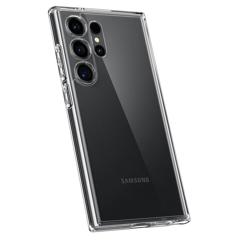 Konstrukce krytu Spigen Ultra Hybrid pro Samsung Galaxy S24 Ultra využívá kombinaci polykarbonátu a termoplastického polyuretanu pro vysokou pevnost i flexibilitu. Průzračný materiál nechává vyniknout prémiové barvě těla telefonu a zároveň brání vzniku škrábanců.