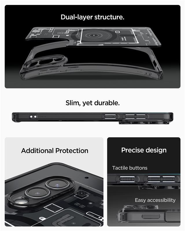 Černý ochranný kryt pro Samsung Galaxy S25 Edge sází na osvědčenou hybridní technologii spojující pevná záda s pružným obvodovým rámem. Přesné výřezy zajišťují okamžitý přístup ke všem ovládacím prvkům a konektorům, přičemž kryt těsně přiléhá a zabraňuje vniknutí prachu.