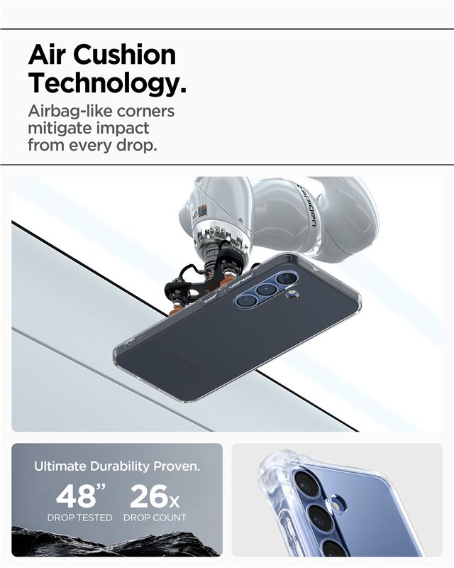 Splňuje přísné standardy vojenské certifikace Mil-grade pro odolnost při pádu, k čemuž přispívá systém vzduchových polštářů v rozích. Konstrukce přesně lemuje veškerá tlačítka i konektory a umožňuje využívat bezdrátové nabíjení bez jakéhokoliv omezení.