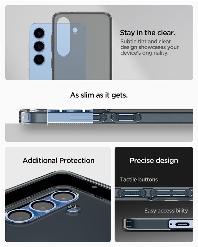 Lehký a odolný kryt pro Samsung Galaxy S25+ tvoří jednu flexibilní vrstvu z prémiového TPU, která nechává vyniknout křivkám telefonu. Transparentně šedé provedení vytváří účinnou ochranu proti každodennímu opotřebení, usazování nečistot a mechanickému poškození povrchu.