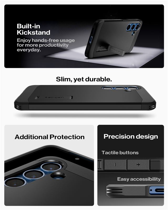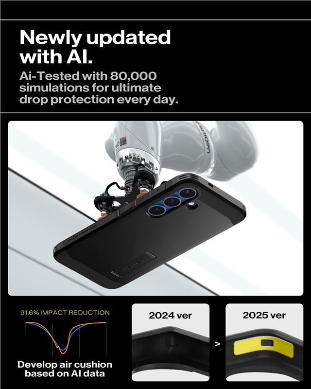 Kombinuje technologii Air Cushion v rozích s certifikovanou odolností armádní úrovně. Výklopný stojánek usnadňuje sledování obsahu, zatímco zvýšené okraje efektivně chrání displej i čočky fotoaparátu před poškrábáním.