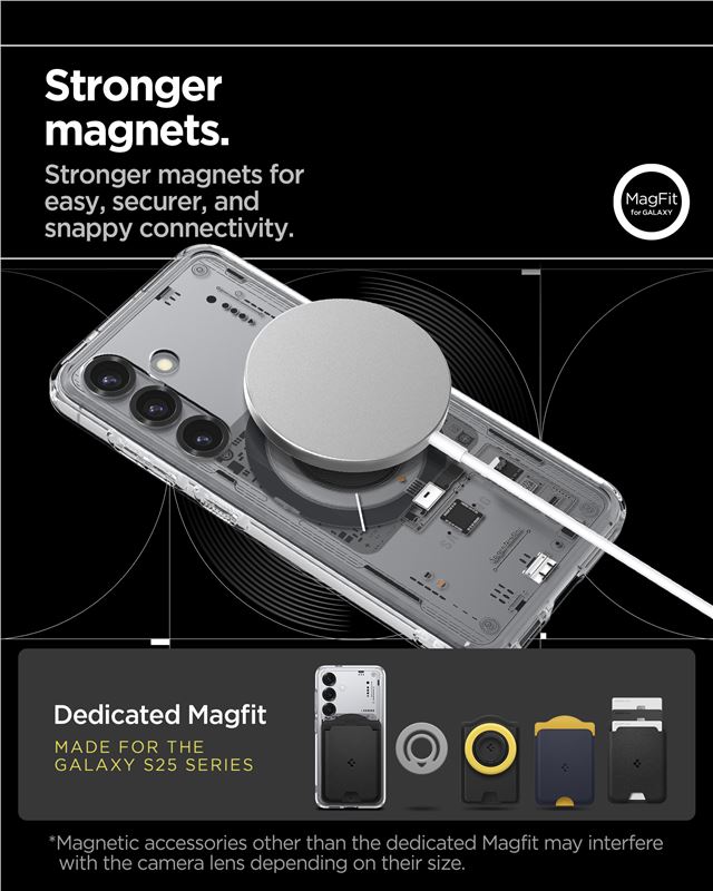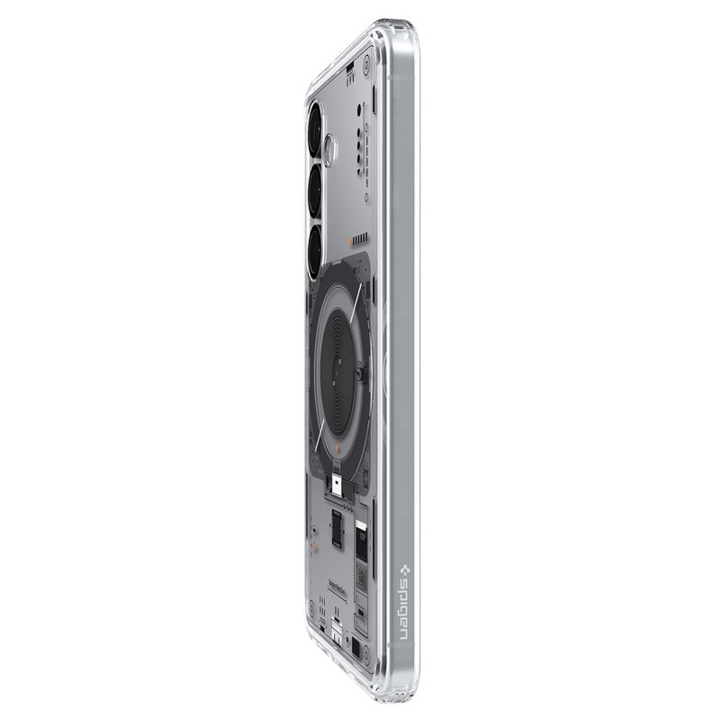 Transparentní ochranný kryt Spigen Ultra Hybrid MagSafe pro Samsung Galaxy S25 spojuje tuhou zadní desku z polykarbonátu s pružným TPU rámem. Integrovaný magnetický prstenec zajišťuje plnou kompatibilitu s technologií MagSafe, což zjednodušuje bezdrátové nabíjení i přichycení magnetického příslušenství.