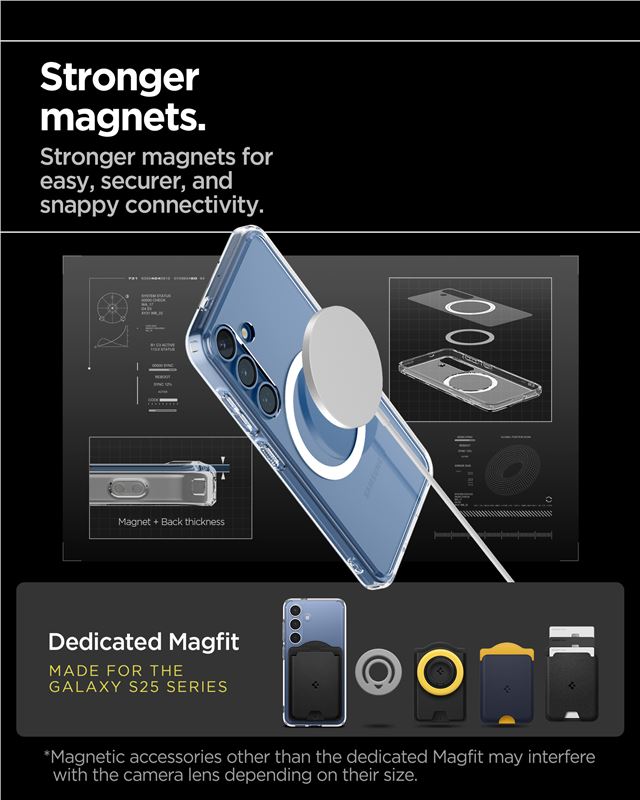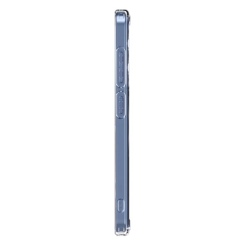Transparentní bílý kryt Spigen Ultra Hybrid MagSafe pro Samsung Galaxy S25 spojuje tuhou polykarbonátovou zadní část s pružným TPU rámečkem. Integrovaný magnetický kruh zajišťuje plnou kompatibilitu s ekosystémem MagSafe a usnadňuje pevné uchycení k magnetické nabíječce nebo držáku.