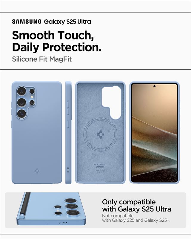 Ochranný kryt pro Samsung Galaxy S25 Ultra Spigen Silicone Fit MagSafe - modrá
