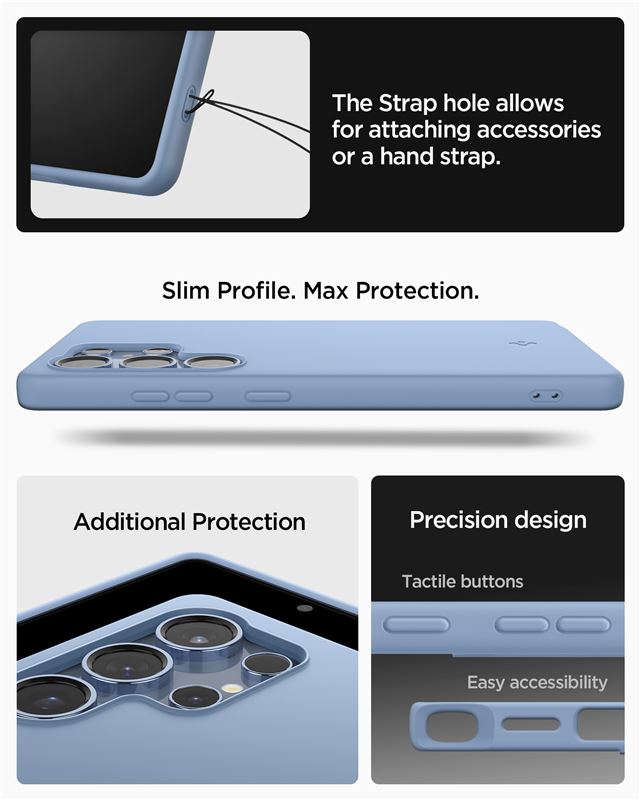 Modré silikonové pouzdro nabízí pro Samsung Galaxy S25 Ultra vyváženou kombinaci stylu a mechanické odolnosti. Povrchová úprava materiálu je jemná na dotek, ale zároveň dostatečně přilnavá, aby zabránila nechtěným pádům telefonu z ruky.