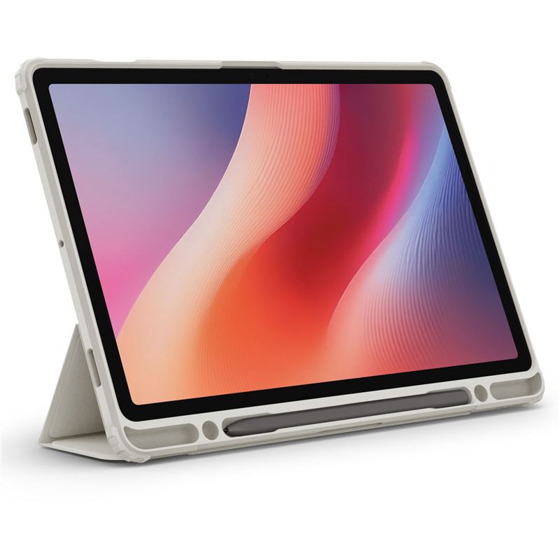 Elegantní šedé pouzdro kombinuje čirou zadní stranu s odolným rámem, čímž vyzdvihuje původní vzhled tabletu. Dvouvrstvá konstrukce z polyuretanu a polykarbonátu spolehlivě tlumí nárazy pomocí technologie Air Cushion.
