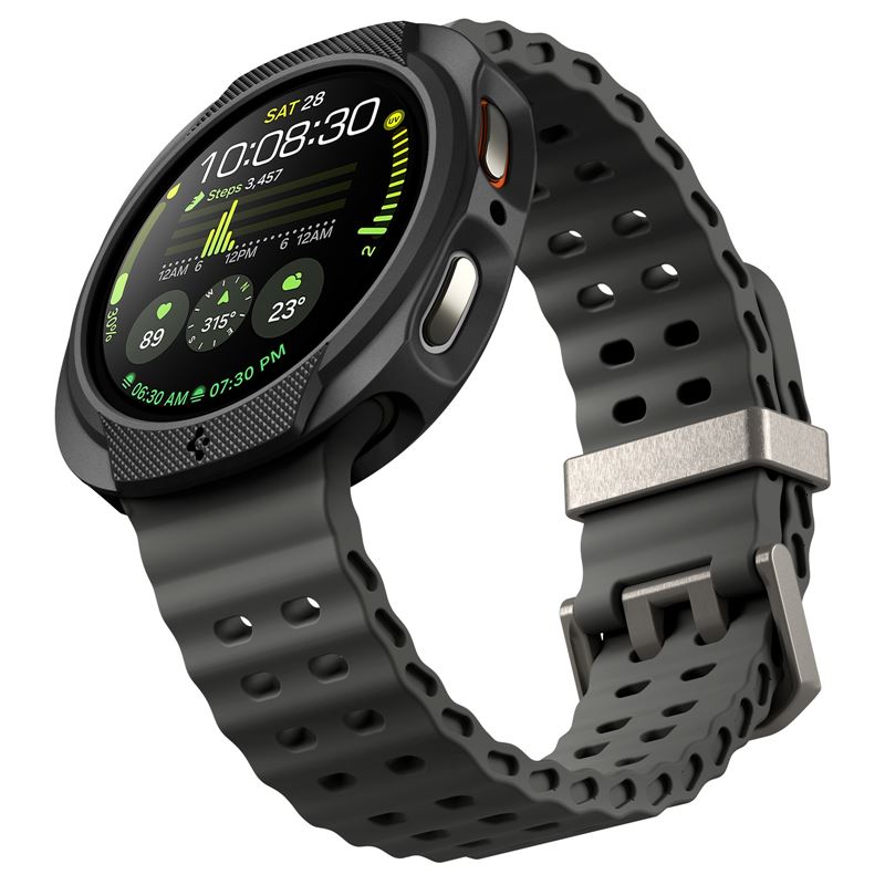 Černý ochranný kryt Spigen Liquid Air zajišťuje precizní ochranu pro hodinky Samsung Galaxy Watch 8 (44mm). Použitý TPU materiál vyniká vysokou flexibilitou a matný povrch eliminuje nežádoucí odlesky i viditelnost nečistot.