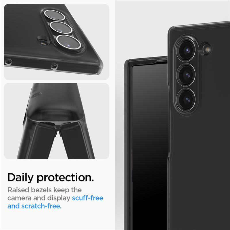 Zabraňuje poškození při pádech pomocí osvědčené technologie Air Cushion a vyvýšených okrajů, které chrání vnější i vnitřní obrazovku. Obal zachovává štíhlý profil zařízení a plně podporuje funkci bezdrátového napájení pro maximální uživatelský komfort.