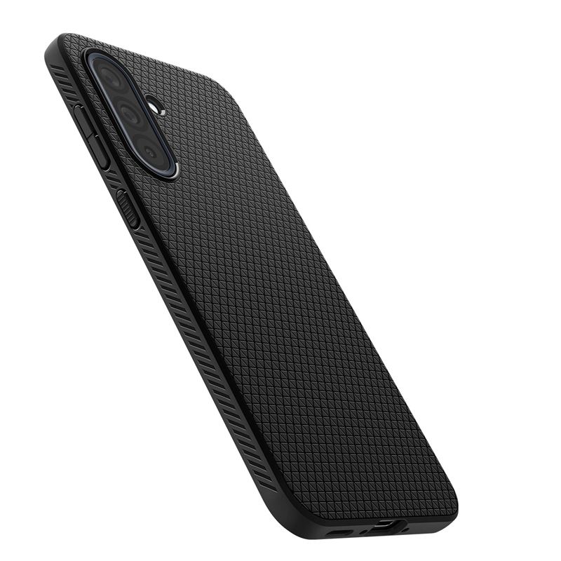 Ochranný kryt Spigen Liquid Air pro chytrý telefon Samsung Galaxy A36 5G kombinuje moderní styl s vysokou funkčností. Matně černý povrch s charakteristickou texturou zajišťuje pevný úchop a účinně eliminuje viditelnost otisků prstů.