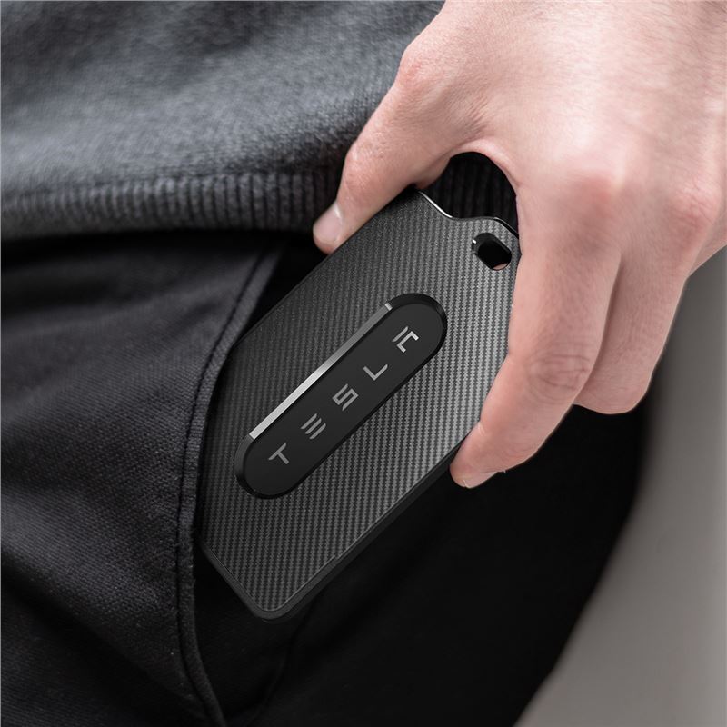 Sada ochranných krytů pro Tesla kartu obsahuje dva kusy elegantních pouzder s detaily z uhlíkových vláken. Odolný plastový materiál chrání přístupovou kartu před poškrábáním a ohnutím, přičemž unikátní výřez ponechává viditelné originální logo Tesla pro zachování estetiky.