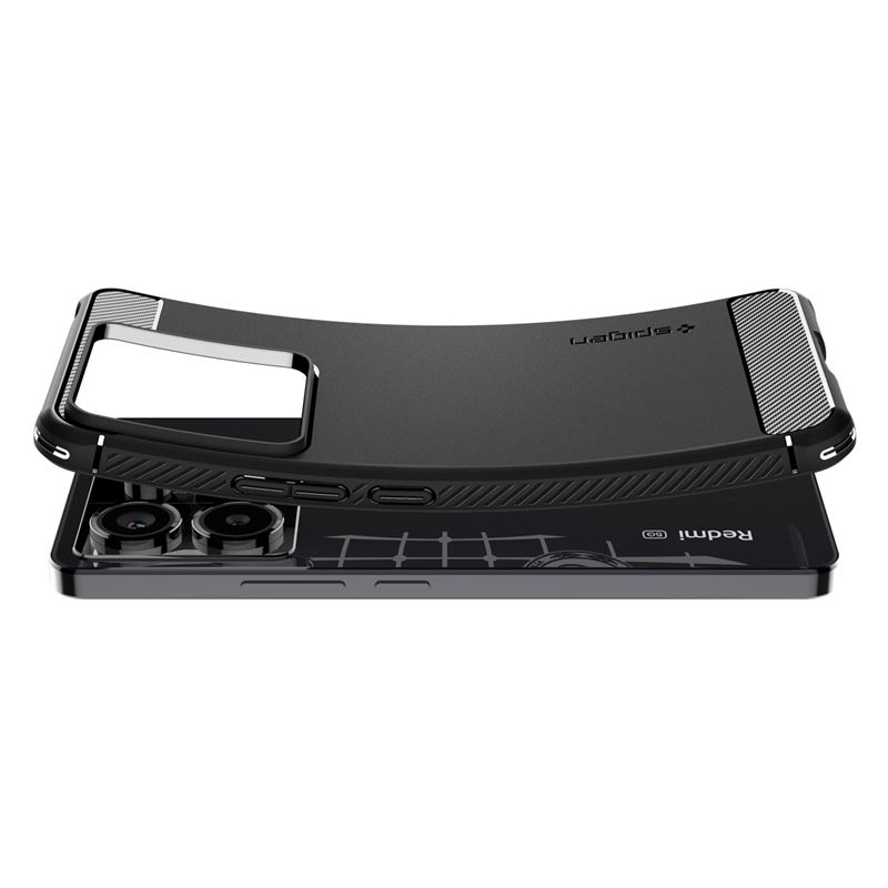Ochranný kryt Spigen Rugged Armor v černém provedení přesně pasuje na tělo smartphonu Xiaomi Redmi Note 13 Pro 5G i POCO X6 5G. Design inspirovaný karbonovými vlákny spolu s matným povrchem vytváří elegantní a funkční doplněk pro náročné každodenní používání.
