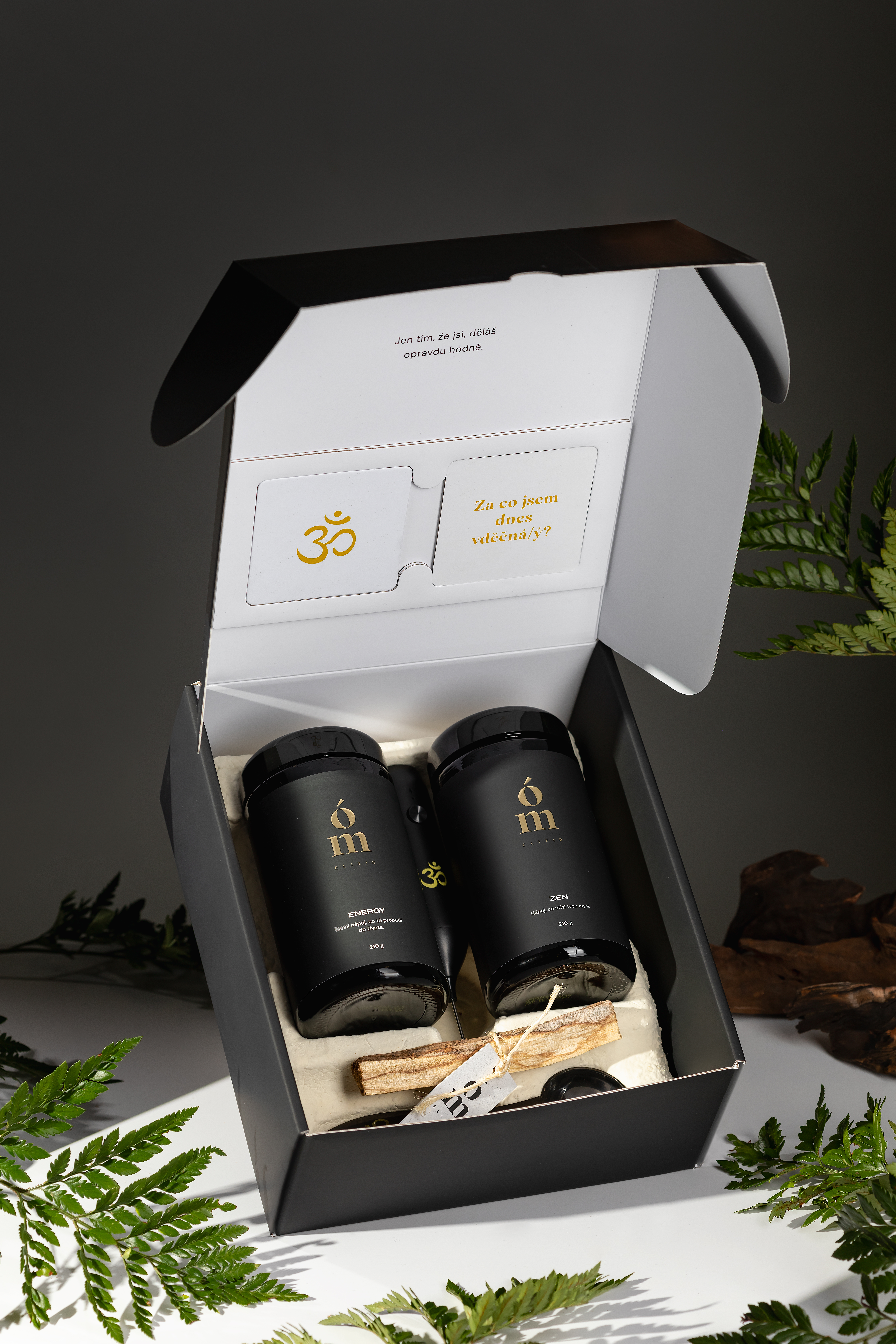 Ómelixir® Magic Box je ideální volbou pro firmy, které chtějí darovat výjimečný dárkový set s hlubším přesahem, energii pro nový den, klid pro večer a prostor pro zastavení.