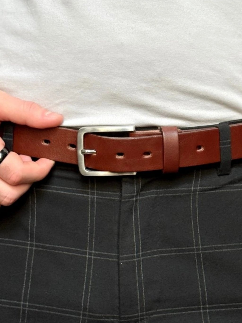 Pánský kožený opasek do kalhot prošívaný. Tento kožený pánský opasek jsme vyladili do detailu a vydrží vám fakt dlouhé roky. Opasek je vyroben ze silné hověziny s pečlivě zabroušenými hranami, což zaručuje jeho pohodlí a komfort při nošení. Díky těmto kvalitním materiálům opasek netlačí a je ideální volbou pro každodenní použití. Přezky z nerezové oceli či mosazi zaručují dlouhou životnost a odolnost. Pro cenově dostupnější variantu jsou k dispozici i přezky ze zinkoslitiny. Tyto nerozbitné přezky jsou navrženy tak, aby odolaly všem výzvám, které jim každodenní nošení přinese. Délka opasku je upravena přesně na míru vašemu pasu, nebo je k dispozici v nejčastější velikosti, pokud nejste si jistí přesným obvodem. Barevné prošití nejen zpevňuje celý opasek, ale také mu dodává elegantní a designový vzhled. Decentní ražba umožňuje přidání monogramu nebo i celého jména podle vašeho přání, což z něj činí skvělý osobní dárek. Každý opasek je vybaven dvěma koženými průvlečkami, které drží volný konec pevně na svém místě, a tak zabraňují jeho pohybu. Tento detail zajišťuje, že opasek bude vypadat upraveně za všech okolností.