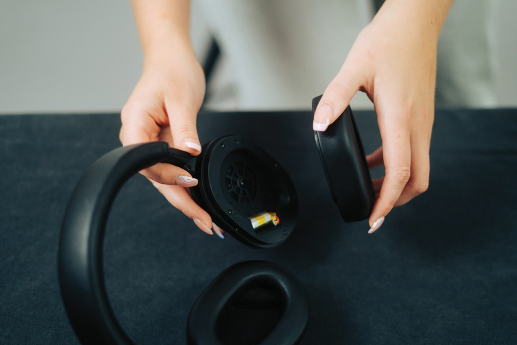 Opravitelná bezdrátová sluchátka Irvine z RCS recyklovaného plastu, černá