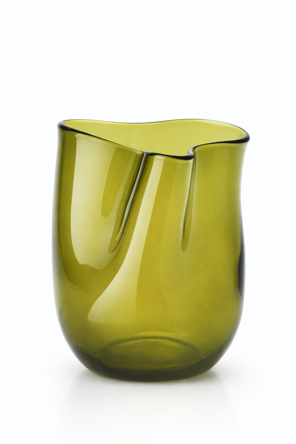 Organicky tvarovaná sklenice z lahve od vína 200 ml - olivová