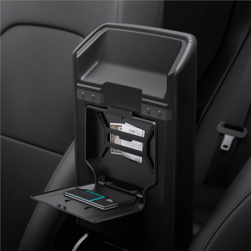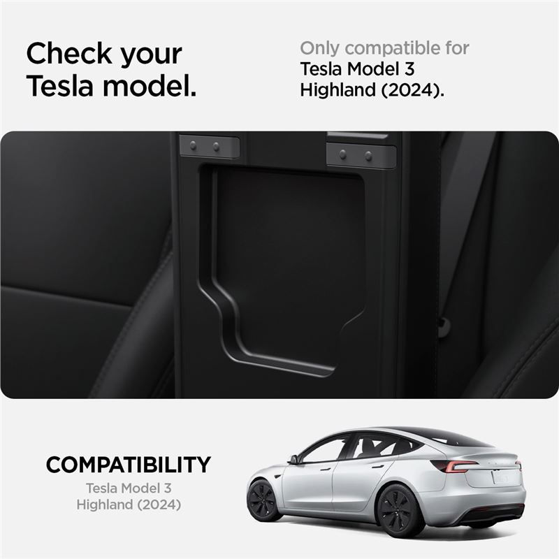 Nenápadná přihrádka Spigen vytváří diskrétní místo pro drobnosti v interiéru vozu Tesla Model 3 (2024). Přesné vyřezání odpovídá modernizovanému designu středové konzole a přirozeně splývá s jejím původním povrchem.