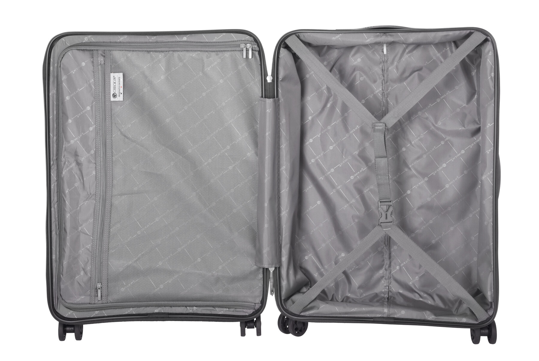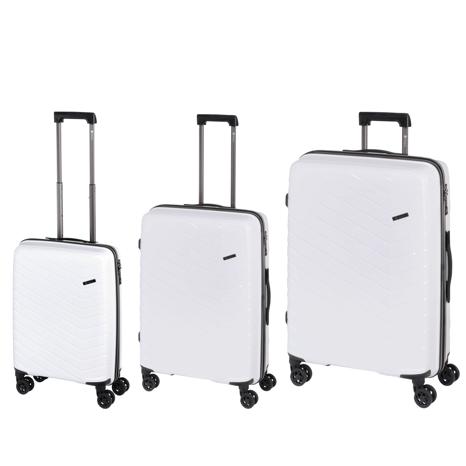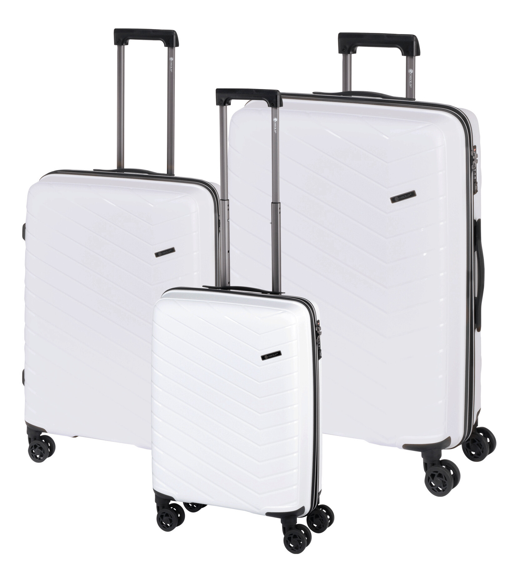 Sada kufrů ORLANDO, 3dílná: exkluzivní design, stabilní a robustní polypropylenová skořepina, balení na obou úrovních, hlavní přihrádka s přepážkou, síťovaná kapsa a balicí popruh, uzamykatelná výsuvná hliníková rukojět, 4 hladce se pohybující dvojitá otočná kolečka s 360° otáčením, včetně 3místného kombinačního zámku TSA