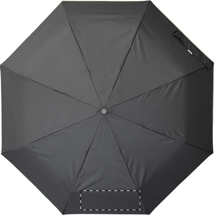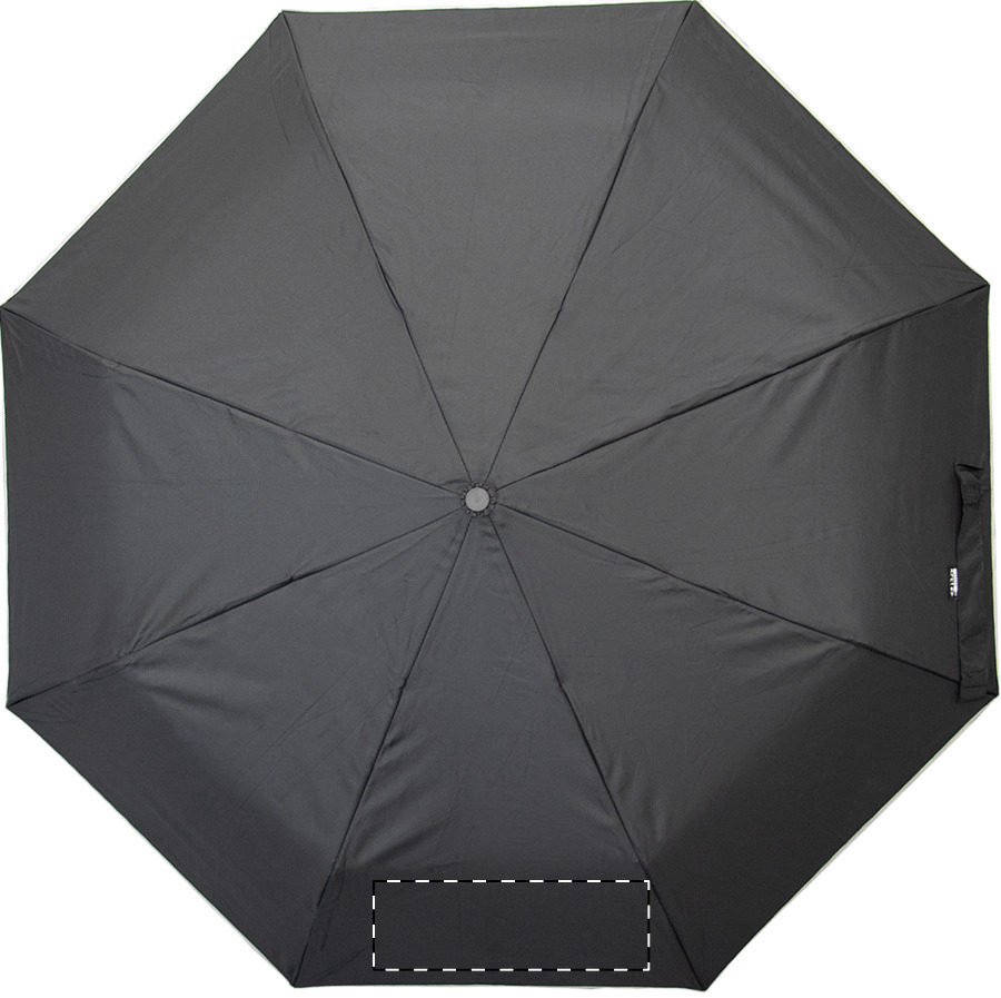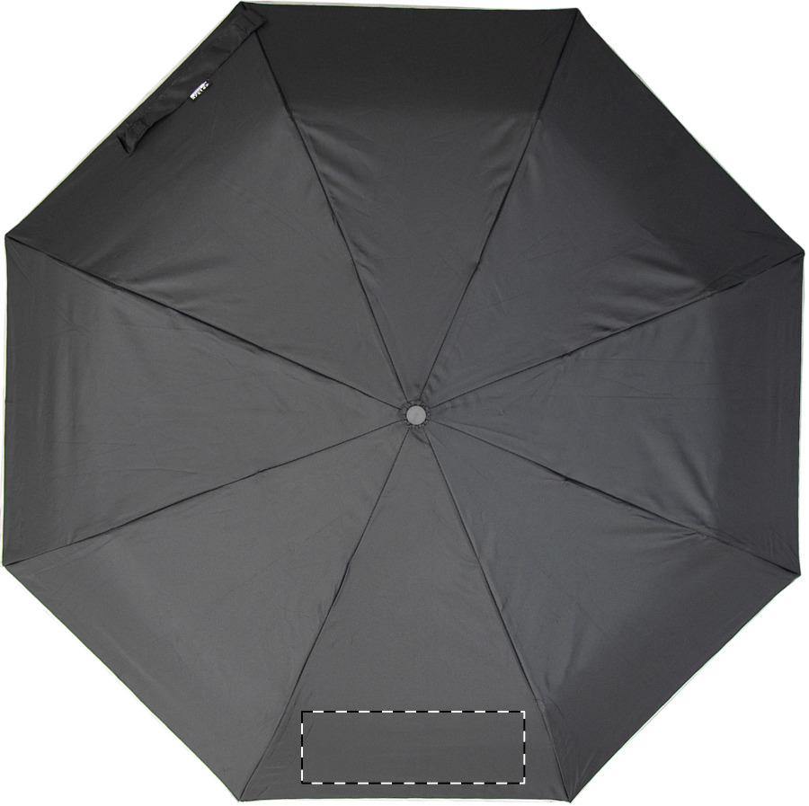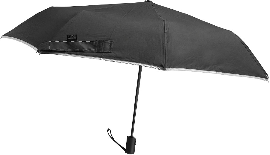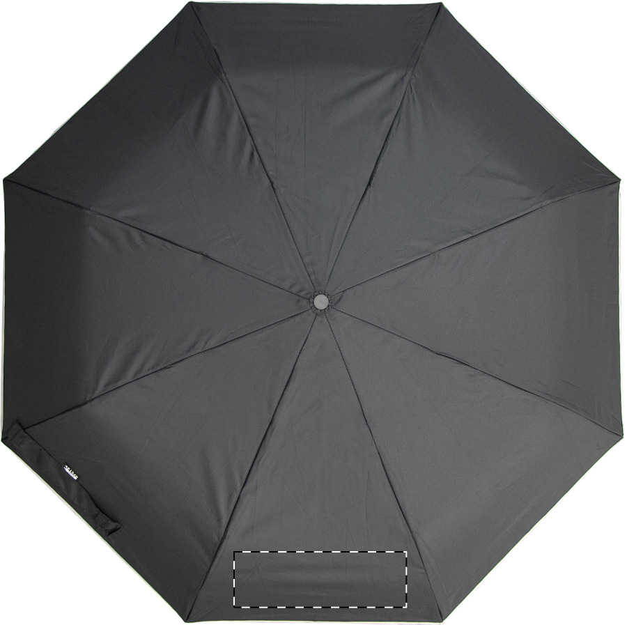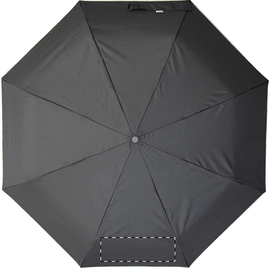 Plně automatický (otevírání/zavírání), větruodolný skládací deštník s 8 panely, stříbrné lemování. S kovovým rámem, žebry ze skelných vláken, pogumovanou rukojetí s popruhem na ruku a přepravním pouzdrem. Ponž 190T RPET. S výrazným štítkem RPET. Ve značkovém pevném pouzdře na zip. Výrobek značky André Philippe.