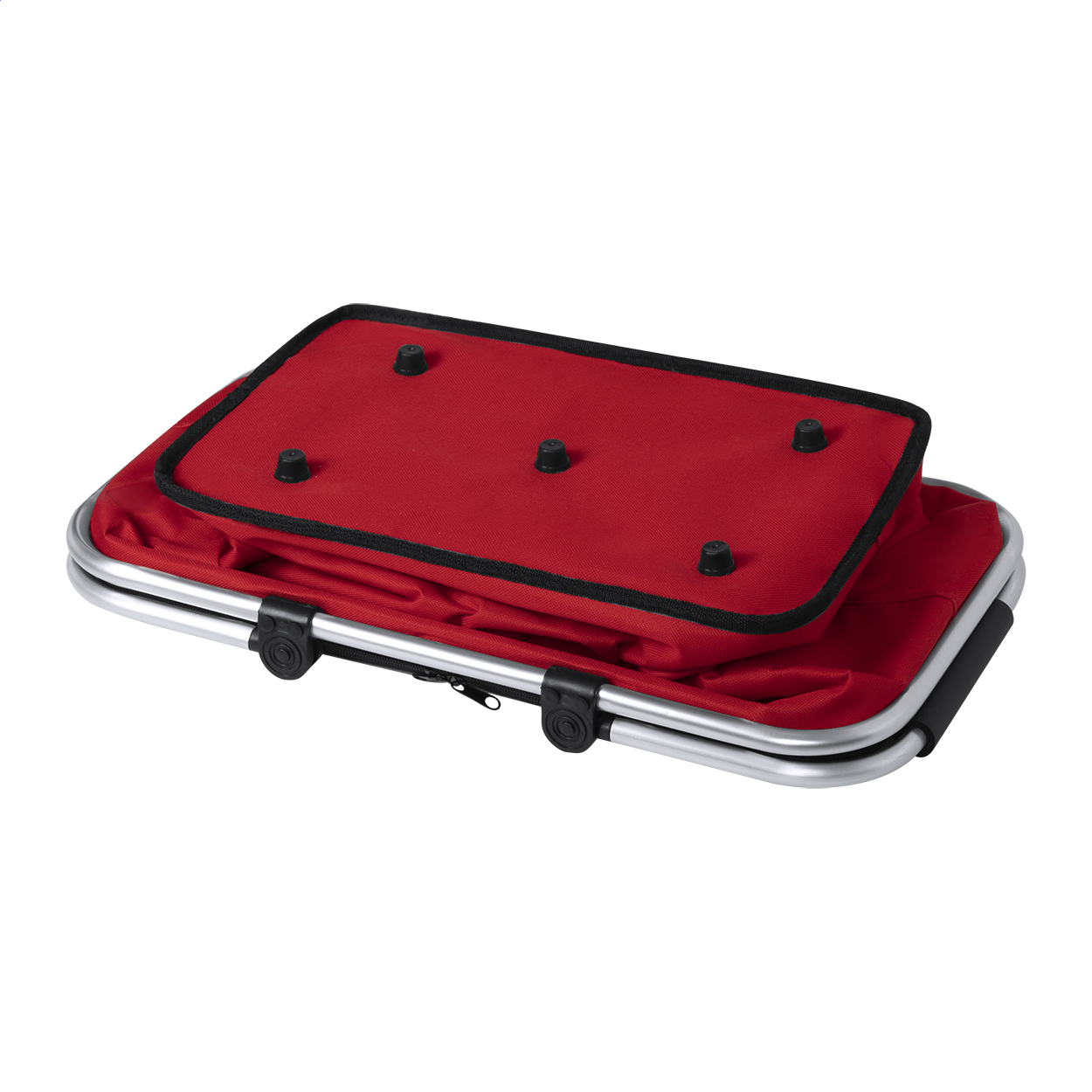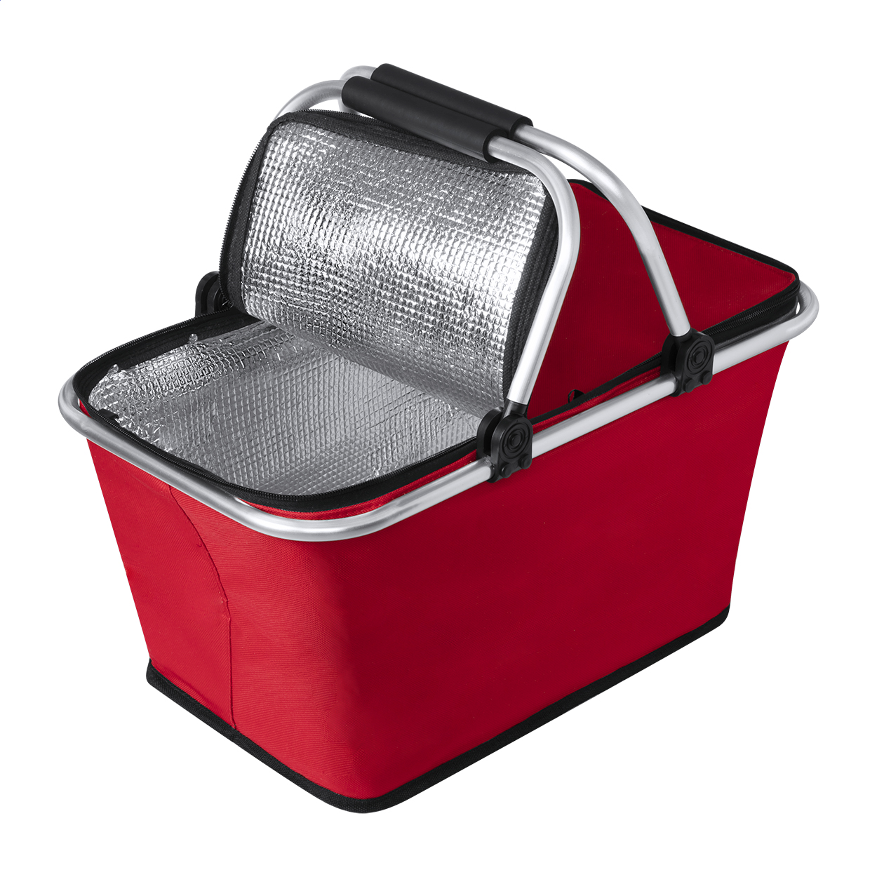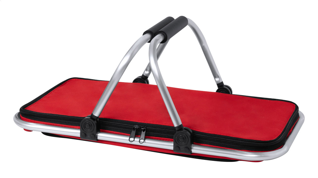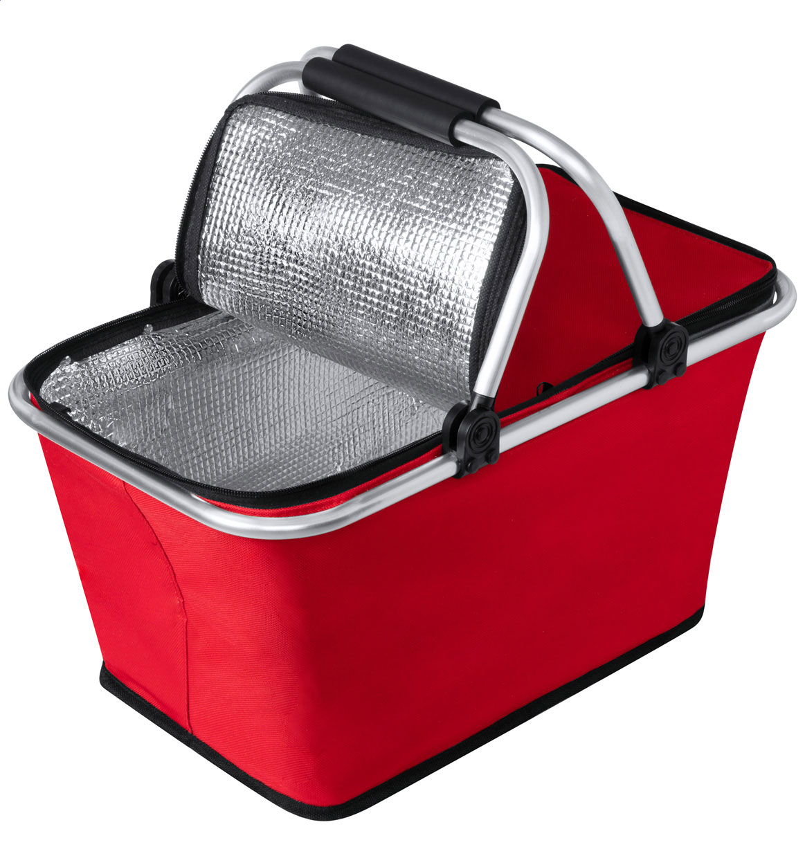 Skládací chladicí piknikový koš s hliníkovým rámem a polstrovanými držadly. Polyester 600D.
