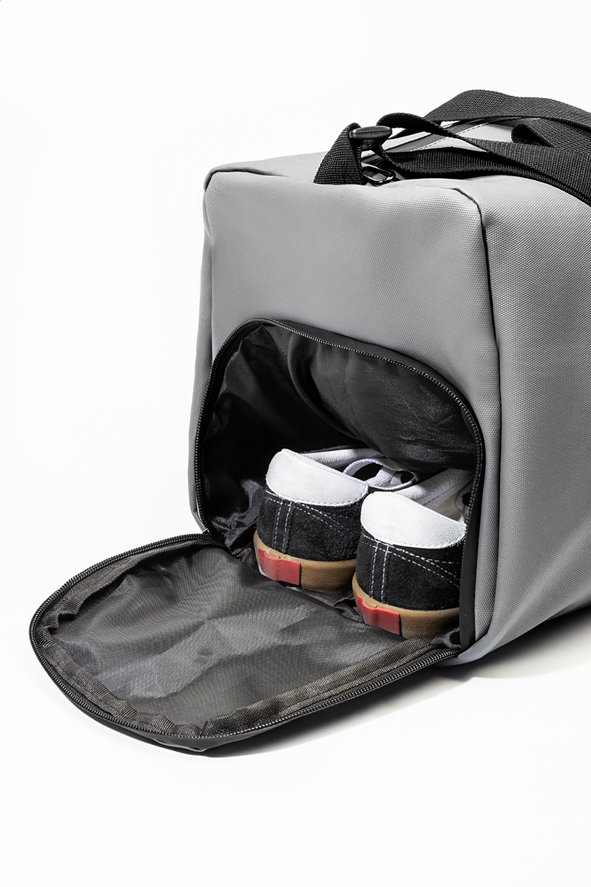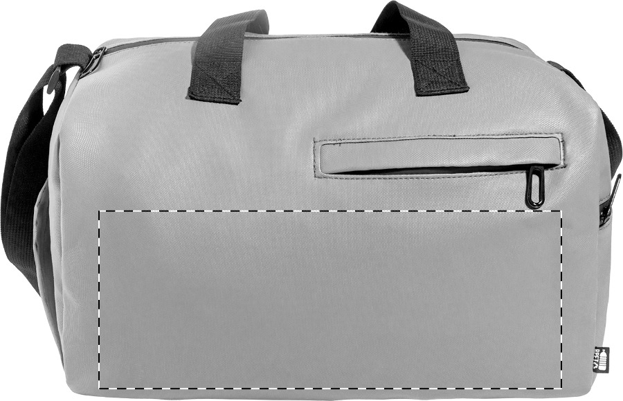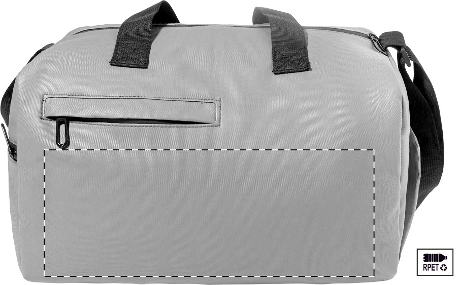 Voděodolná sportovní taška z RPET s hlavní přihrádkou na zip, přední kapsou na zip, přihrádkou na boty na zip a nastavitelným ramenním popruhem. Polyester 600D RPET s PU zátěrem a výrazným štítkem RPET.