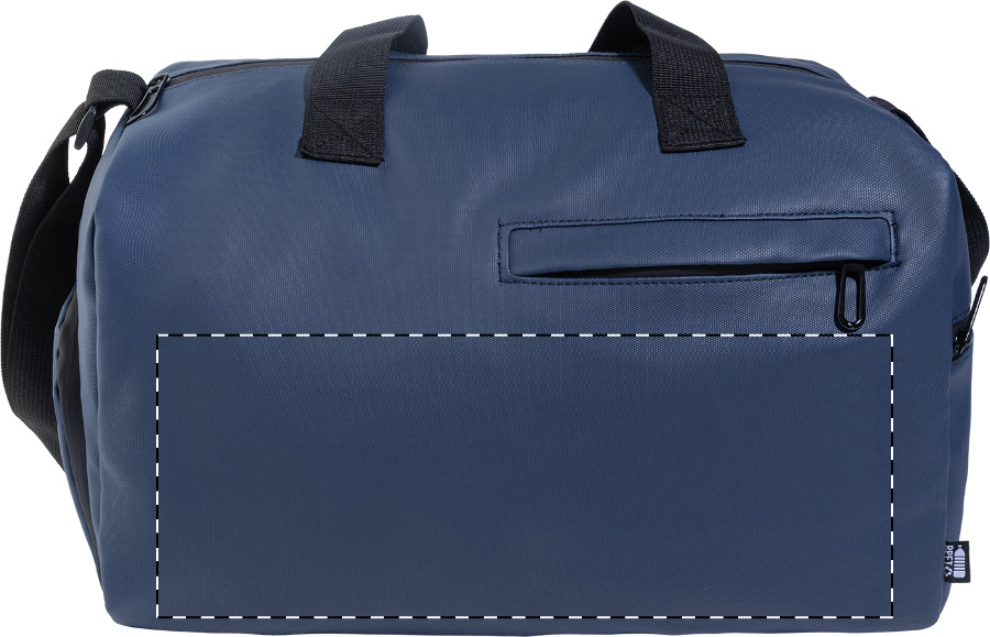 Voděodolná sportovní taška z RPET s hlavní přihrádkou na zip, přední kapsou na zip, přihrádkou na boty na zip a nastavitelným ramenním popruhem. Polyester 600D RPET s PU zátěrem a výrazným štítkem RPET.
