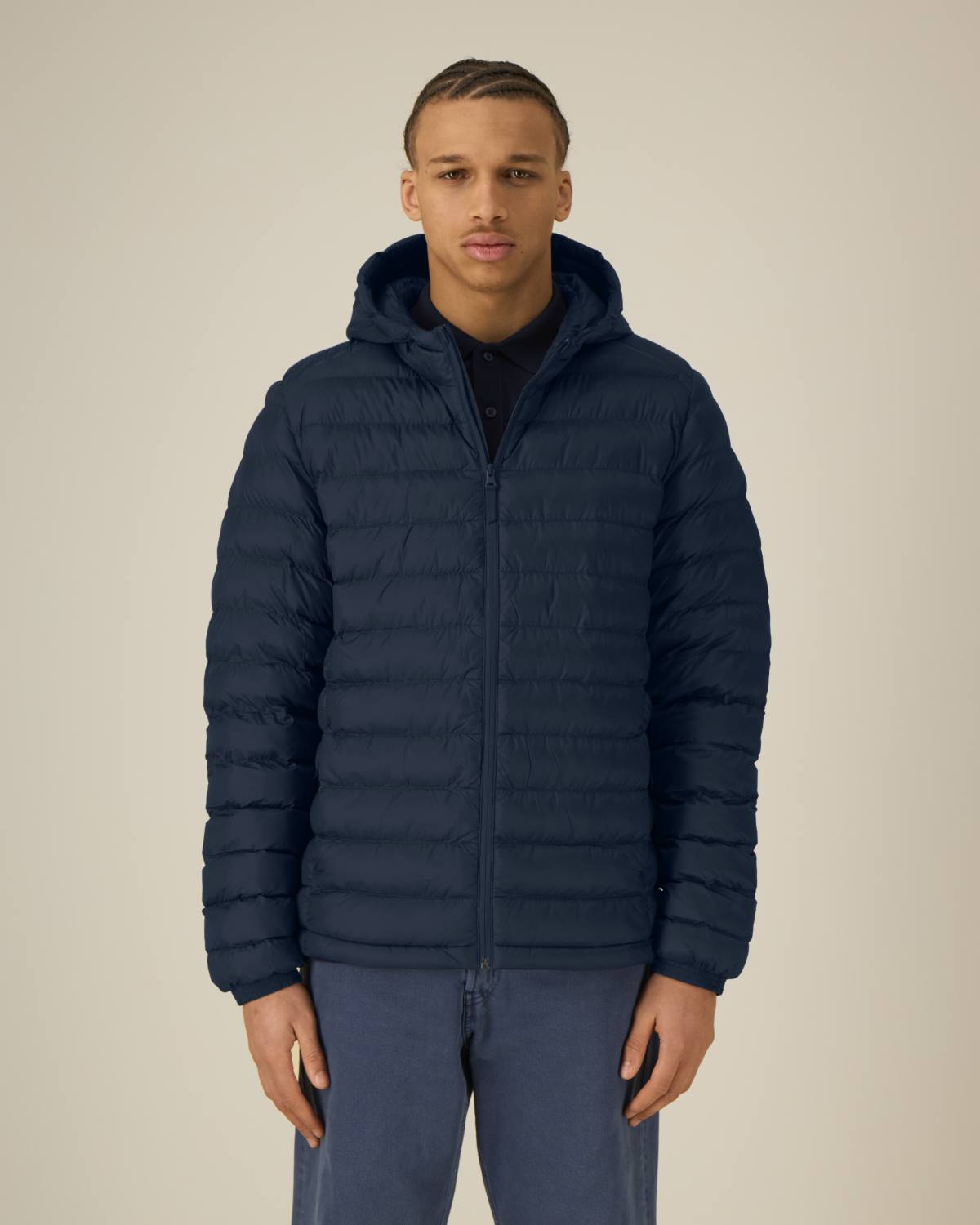 Pánská bunda s vysokým limcem s kapucí. Kapuce má elastickou stahovací šňůrku s plastovou zarážkou. Vsazené rukávy. Nylonový zip po celé délce. Kapsy na zip s taháčkem. Bunda je plně prošívaná. Boční panely pro lepší tvar. Spodní lem s elastickou šňůrkou a plastovými zarážkami.